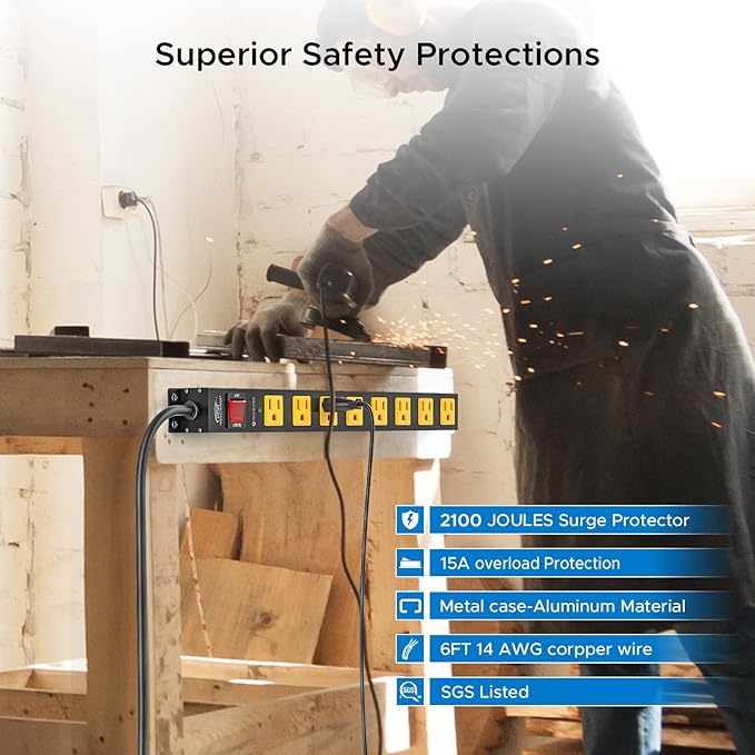 - [Versatility] - Makes it an ideal choice for a wide range of settings, including homes, garages, and workshops. Whether you're working on a DIY project in your garage, or running power tools and machinery in your workshop, this metal power strip can handle it all.