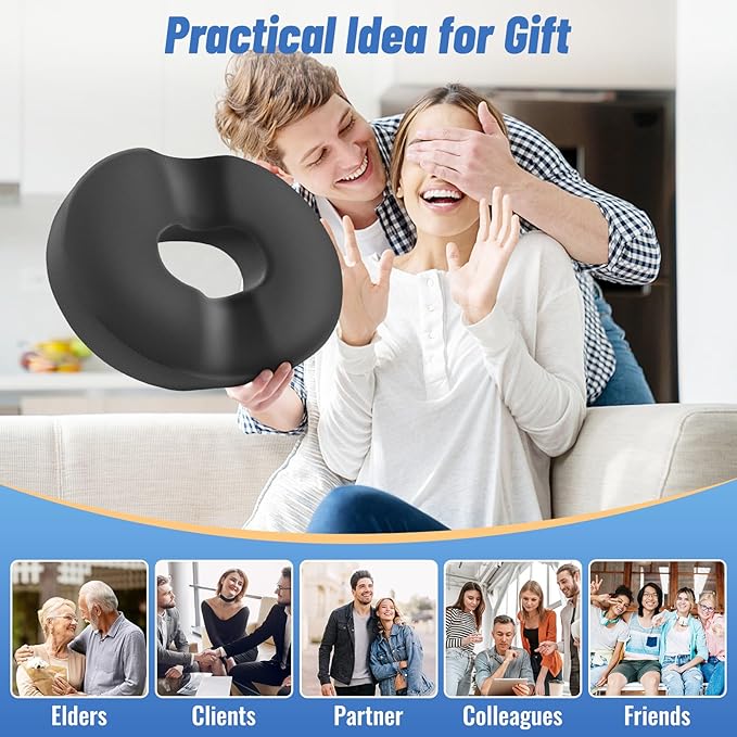 - [Relieve Sedentary Discomfort] Whether you have a desk job or spend long hours sitting, sedentary discomfort is a real issue. Prolonged sitting can lead to a variety of health problems, including lower back pain, hip pressure, and even sciatica. CloudBliss donut pillow is your answer to finding relief from these issues. Its innovative design distributes weight evenly, reducing pressure on the spine and promoting proper posture