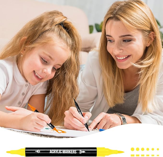 - 【Versatile Dual-Tip Design】: Unleash your creativity with our acrylic markers featuring a unique dual-tip design. The extra-fine tip is perfect for intricate details, while the brush tip allows for expressive brushstrokes. From delicate line work to bold sweeps, these markers adapt effortlessly to your artistic vision.