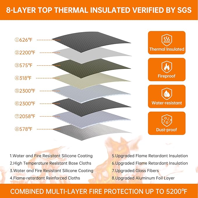- Upgraded Fireproof Heat Insulated Materials: The Upgraded fireproof document box is made of thickened silicone coated fireproof cotton material and aluminum foil which withstand the temperature up to 5200℉(double safe protection). Aluminum foil lining isn’t easily melt under high temperature after several tests. It has been passed by SGS TEST(UL94 VTM-0 Certified). Fireproof file box is not only fireproof but also high water resistant in case it gets wet for any reason