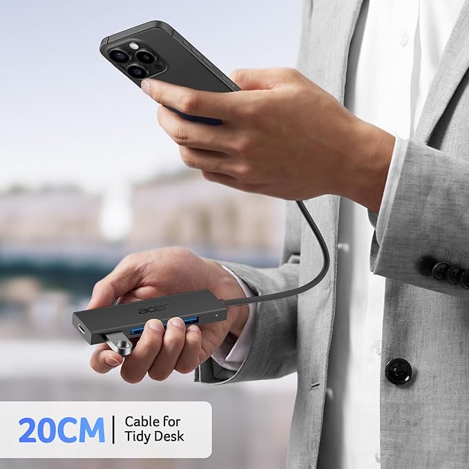 - 【4 Ports USB 3.0 Hub】Acer USB C Hub offers a versatile solution, expanding your device with four additional USB 3.0 ports. Perfect for connecting USB peripherals like flash drives, mice, keyboards, and printers.