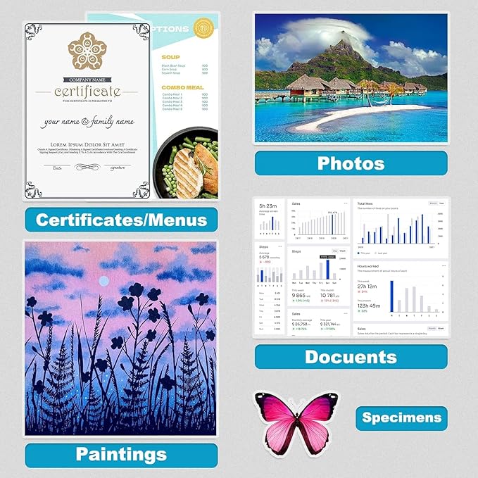 - 【Wide Application】: The laminate paper is great for protecting and preserving documents, photos, menus, recipe cards, certificates, children's artwork and more.