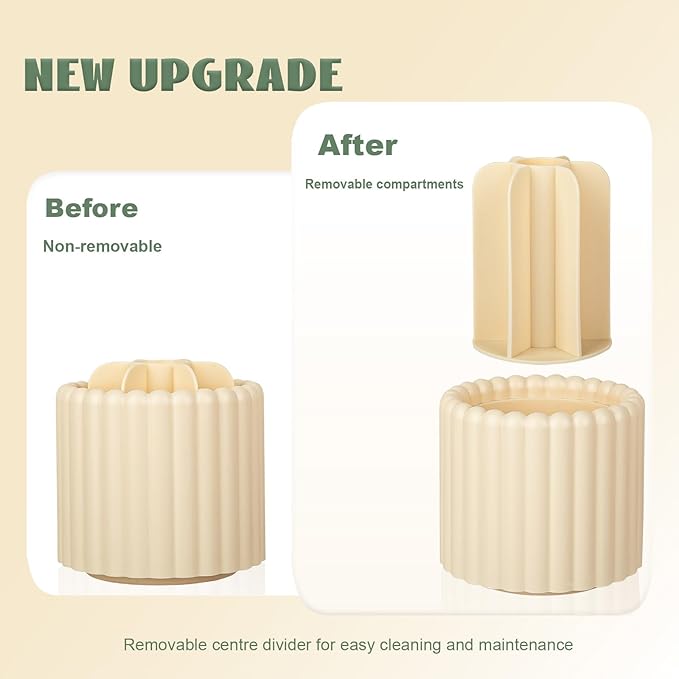 - SMOOTH ROTATING: The rotating base does not touch the countertop ( 0.35 inches above the countertop), and there are four non-slip rubber pads on the base, the makeup brush container cup will not move when rotating and rotates smoothly.