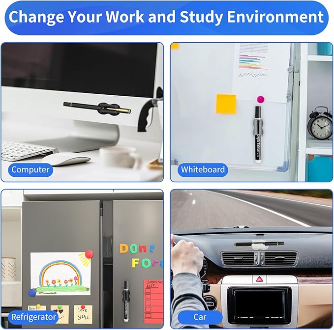- 【Space Saving & No More Searching For A Pen】We offer 12pcs adhesive pen holders to keep everything organized. Adding these pen holders & pencil holders to the areas where we regularly use pens throughout the house, office, and classrooms, etc. They make pens, pencils, and markers available without cluttering our space. No more lost pens, No more pens rolling off desks