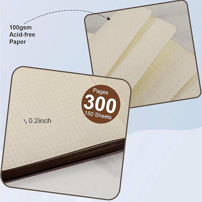 300 Pages Leather Dotted Journal Notebook,Softcover Leather Dotted Journal Notebook for Women Men,300 Pages Notebook for Travel,Business,Work,Office,School Note Taking,5.7'' X 8.3'',grey