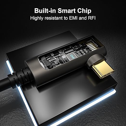 - 【Right Angle Designed】This USB-C to USB-C extension cable is a four-core optical fiber with multiple internal shielding, and the fiber core is covered with Kevlar fiber. Experience effortless connectivity with this USB-C to right-angle USB-C cable(a 90° angle), promoting ease of use and safe and secure data transfer. The advanced alloy and 24K gold-plated connectors can resist corrosion and are more durable.