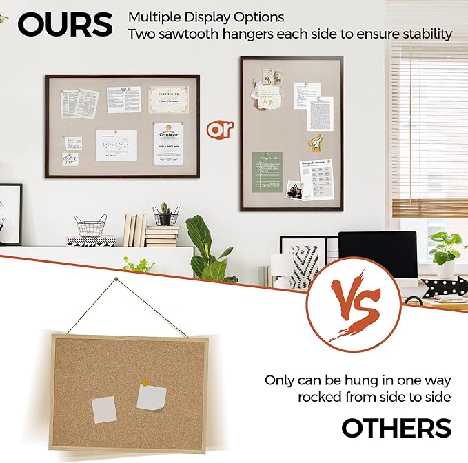 - Unique Design: Easily customize the board orientation to fit your space. Natural cork bulletin board add a classic look to your office or home. Both strong and stylish, it will be a great addition to your space.