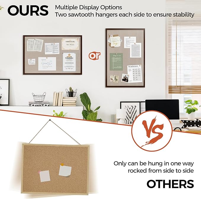 - Unique Design: Easily customize the board orientation to fit your space. Natural cork bulletin board add a classic look to your office or home. Both strong and stylish, it will be a great addition to your space.