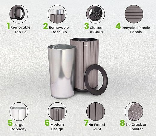 - HIGHLY DURABLE: Built with premium quality materials and recycled plastic grey slates, this garbage receptacle can ensure a long life and hold up against all weather conditions.