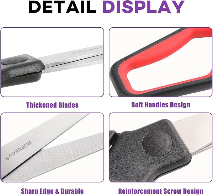 - ✂ 【STAINLESS STEEL LARGE SCISSORS】Durable stainless steel blades enable high-density steel which makes it 3 times harder than normal stainless steel and is smoother cutting. Blades stay sharper longer. Scissors are lighter, stronger and sharper. Lightweight yet durable enough for any cutting job. Scissors are ideal for paper, cardboard, lightweight line, fabric and other materials.