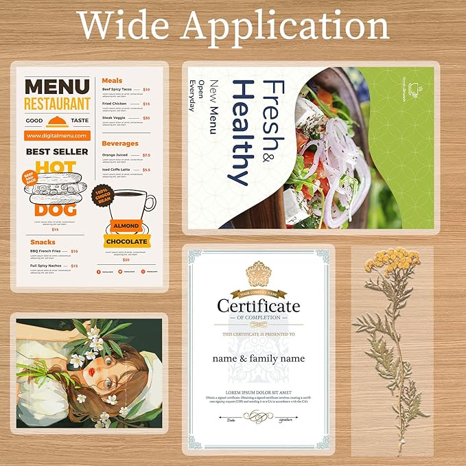 - 😊【Wide Applicability】Laminating pouches 8.5 x 11 compatible with all thermal laminators. Not only for office work, but also for crafting. Very suitable use for important documents, certificates, photos, menus, invoices, decorative cards, logos, etc.