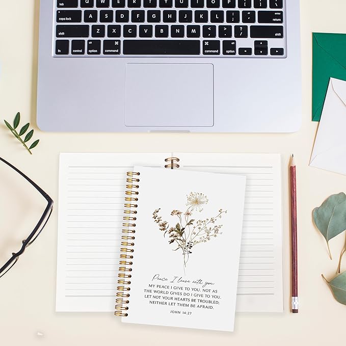 BearCake Peace I Leave with You Floral Christian Notebook Journal, Christian Gifts for Women, Bible Notebooks for Note Taking, Bible Journaling Notebook, Hardcover Spiral Notebook 5.5x8.3