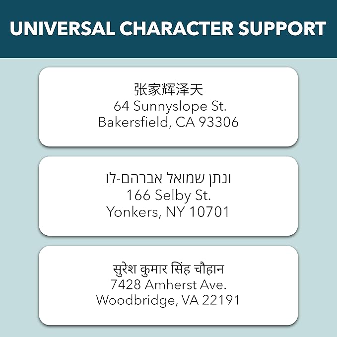 - UNIVERSAL CHARACTER SUPPORT - We support all foreign and English characters, allowing you to personalize each label with your unique name and address, no matter the language.