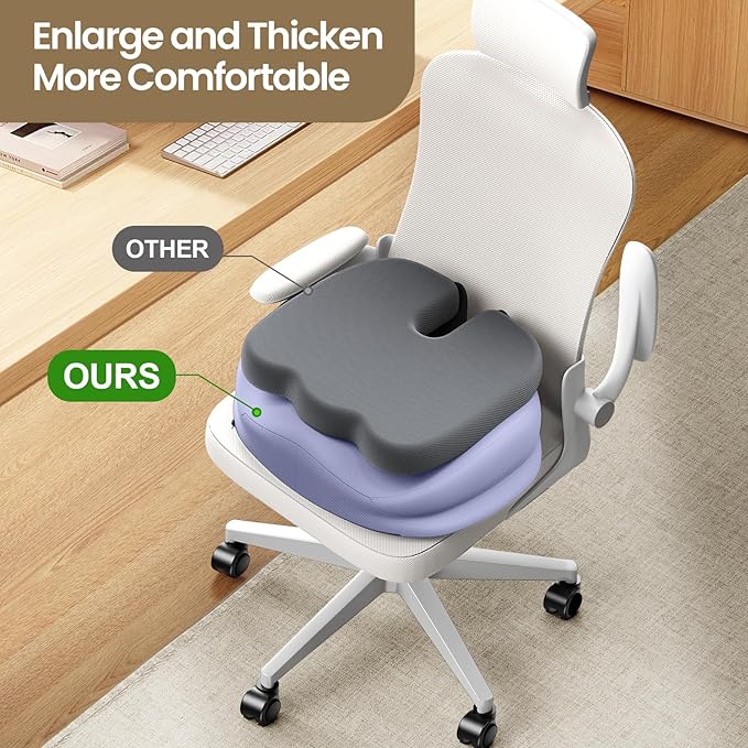 - đ§˝ăErgonomicăThe Ergonomic Seat Cushion is scientifically contoured to cradle your thighs & hip and help you sit upright up on any chair.