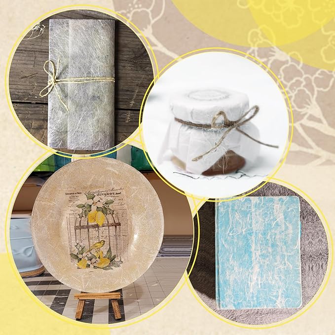 - Natural Plant Material- These mulberry paper is made of quality bark with visible plant fibers in natural texture. Lightweight and full of toughness, not easy to tear and delicate to use. Well packaged with cardboard to avoid crease during shipping!