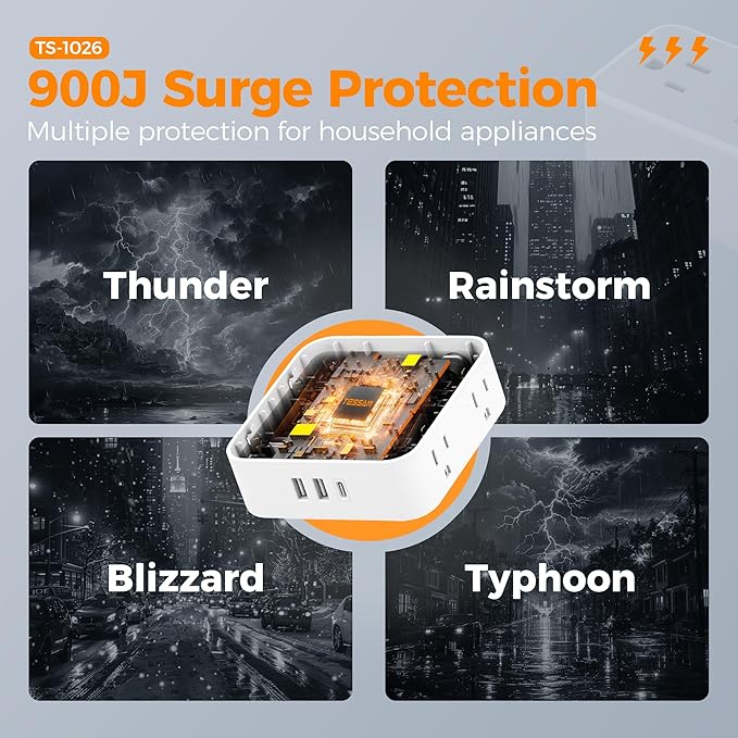- Surge Protector Outlet: Equipped with overload protection 900J, short-circuit protection, over-current protection, and etc; Reliable on/ off switch can automatically shut off and protect your expensive electronics, providing you with a safe and reliable charging environment