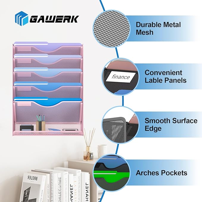- ✏️ Sturdy Metal Structure: Wall file rack organizer is made of high-quality metal material with sturdy metal construction and durable powder-coated surface.