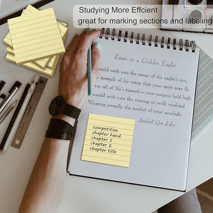 - LINED STICKY NOTES: Whether you need to take notes during a meeting or want to leave a reminder for yourself, yellow note pads are the perfect solution. They are easy to use and can be repositioned at any time without leaving any residue or damage.