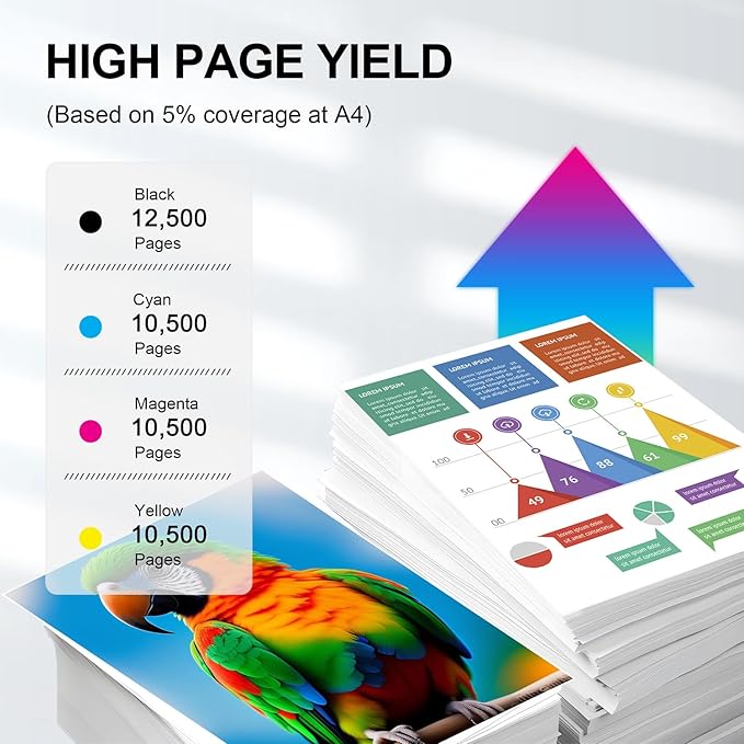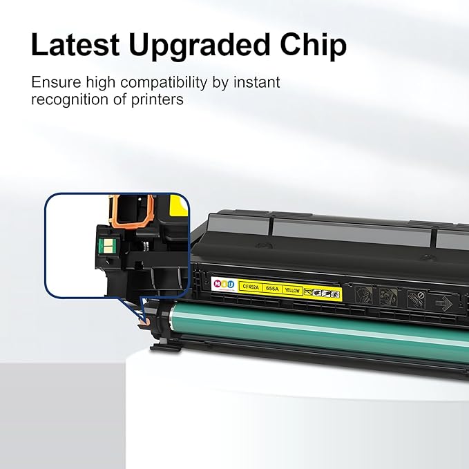 - High Page Yield: 12,500 Pages Compatible for 655A black toner and 10,500 Pages per Color toner at 5% coverage (Letter/A4). The inbuilt chip can indicate the toner level left and you can arrange a new replacement when needed