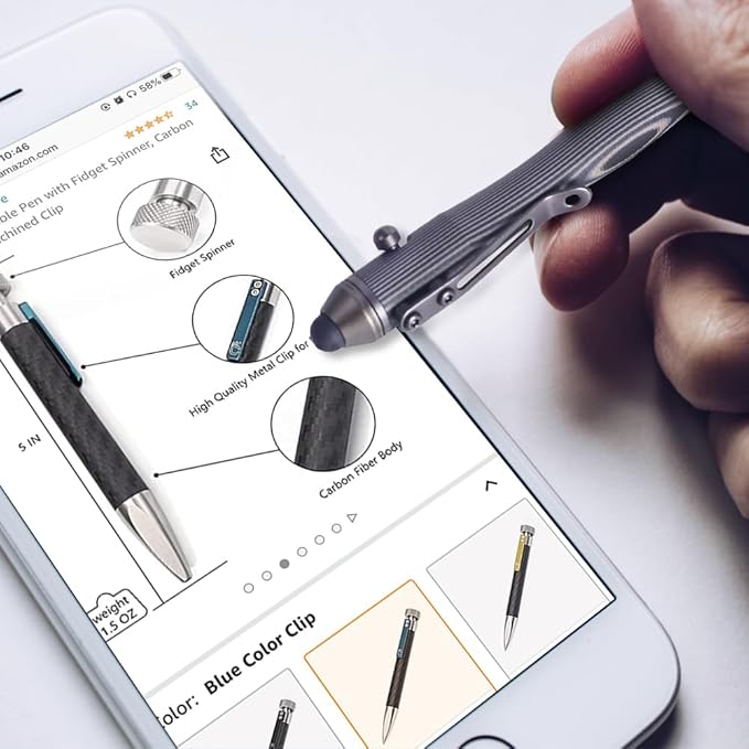 Cool Hand 5.7'' Bolt Action Pens, EDC Ballpoint Ink Refillable, Stylus for Touch Screen, G10 Body w/Pocket Clip, Ergonomic Grip, with a Free Refill, 5375-B