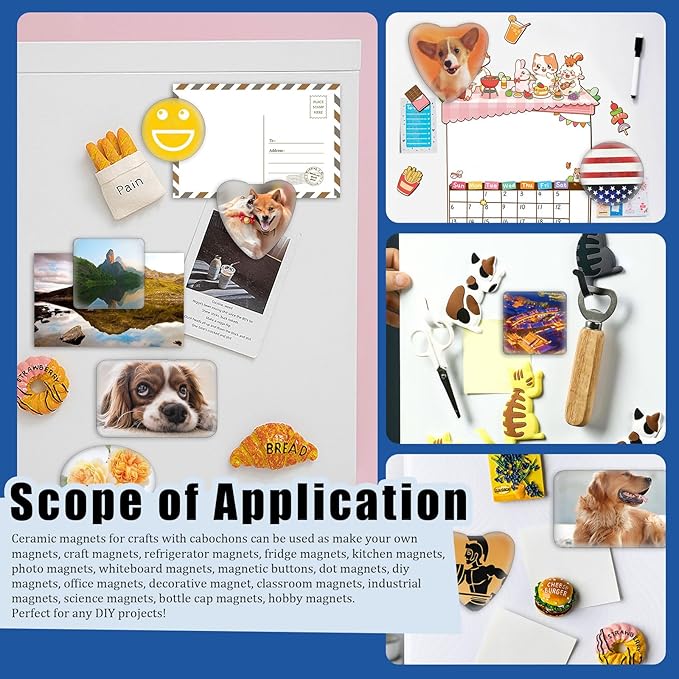 - ♛【Widely Applicable】: Ferrite magnets with adhesive backing and clear glass cabochons for DIY fridge magnets add more fun and convenience for sticking sticky notes in daily life. You can also use them to make earrings, necklaces, pendant jewelry and other handicrafts to enjoy more fun with friends and family.