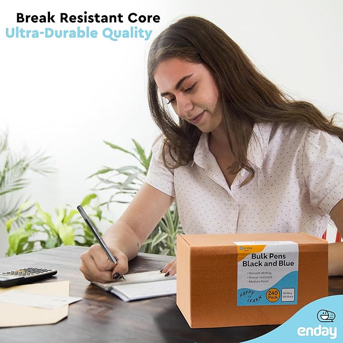 Enday Ballpoint Pens Bulk Blue and Black Pens (240 Pack) 120 Black & 120 Blue - Medium Point (1.0mm) Flexible Round Barrel For Writing Comfort, Pens Bulk for School, Home and Office.