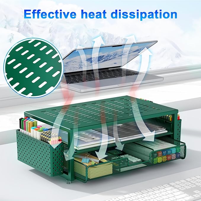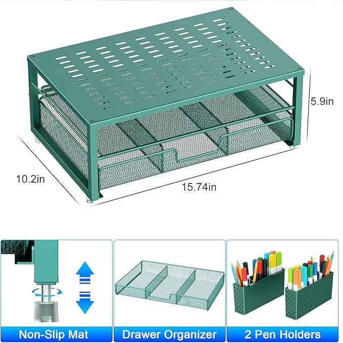 - 【Unique Desk Decor】: The monitor stand has a classic green coating, adding elegance and modernity to your office while being sturdy and practical. allowing you to work in a cozy and tidy environment with greater comfort and efficiency.