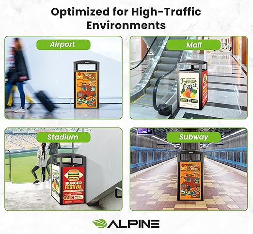 - Dual-Function Design: Combines a 40-gallon commercial trash can with customizable advertising panels, perfect for promoting brands, products, or seasonal campaigns.