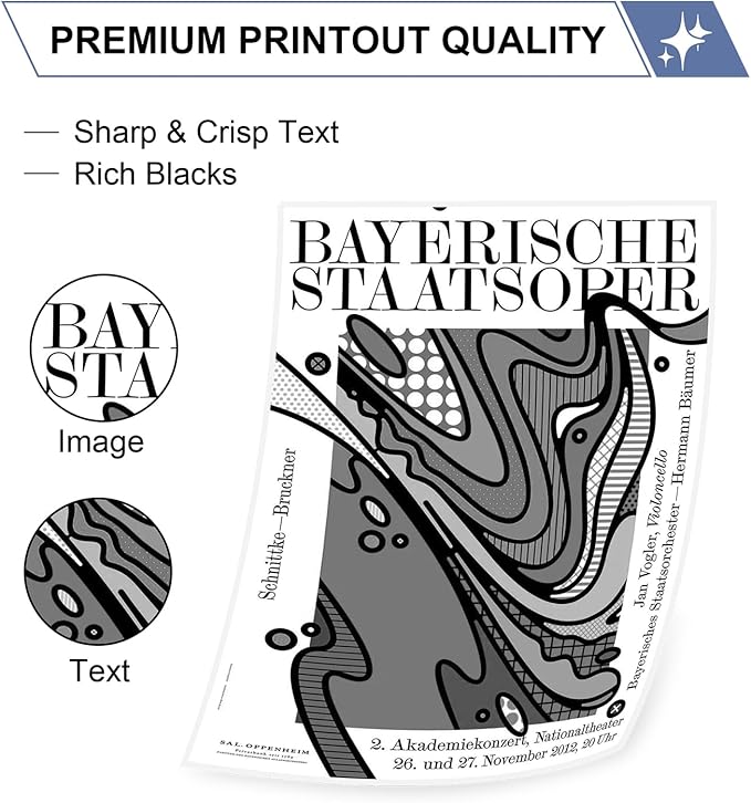 - Premium Printout: Vivid image and sharp text delivery, no fading, no streaking and smearing