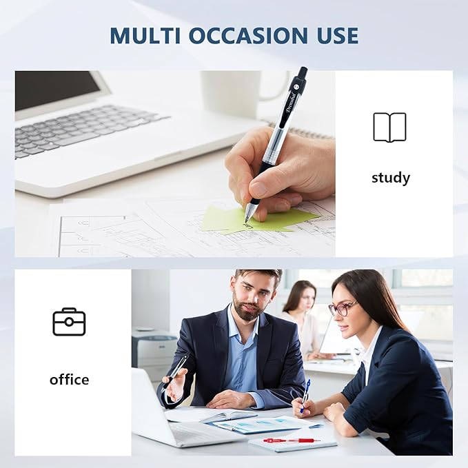 - [Comfort & Portability Design]Write for hours without fatigue! The cushioned rubber grip molds to your hand, while the retractable ink pen body ensures portability. Perfect for students, professionals, or anyone prioritizing comfort during meetings, lectures, or creative sessions.