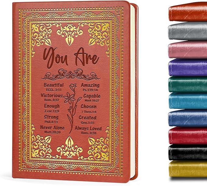 - The bible verse leather notebook with inspirational words from bible verses, it is inspiring and gives you the strength to face difficulties.