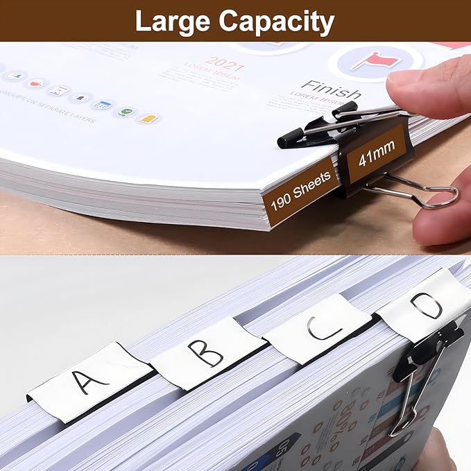 - Assorted Sizes: Includes 100 black metal binder clips in 4 sizes - 15mm (mini) x 75 pcs, 25mm (small) x , 32mm (medium), and 41mm (large) - for various paper clipping needs.