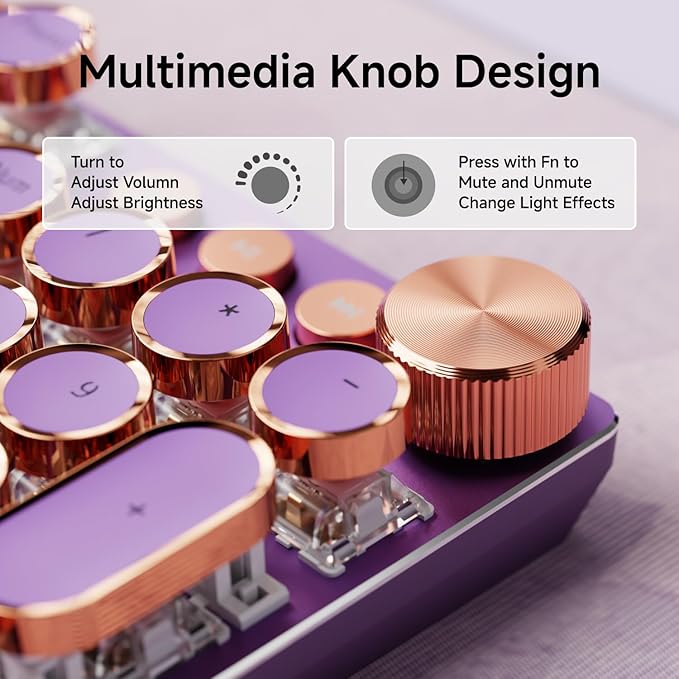 EWEADN Typewriter Style Mechanical Gaming Keyboard, Wired Mechanical Keyboards,104 Keys Backlit LED Keyboards, Media Control Knob, Wired Computer Keyboard Pink Switch for Windows/Mac/PC-Purple