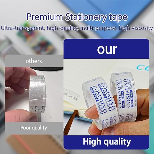 - TRANSPARENT DESIGN: Our transparent tape is perfect for all your office and school needs. With its complete transparency, Crystal clear adhesive tape ensures seamless, invisible application on various surfaces.