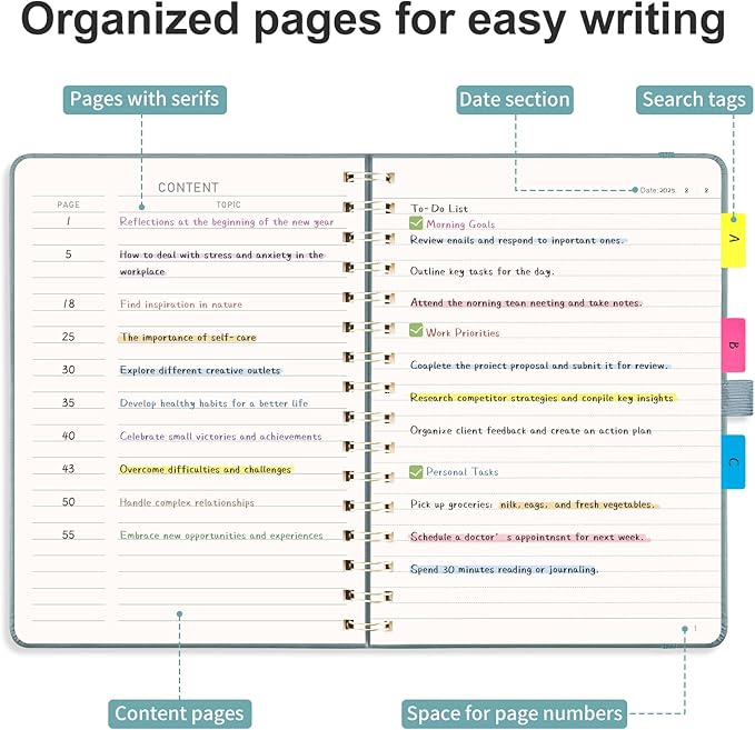 - ORGANIZED AND PRACTICAL NOTEBOOK: Our lined spiral notebook features 140 numbered pages and 4-page blank table of contents. In a medium A5 size 5.7" × 8.3", providing ample writing space while remaining lightweight and easy to carry