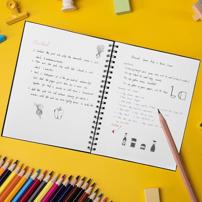 - Dual Spiral Binding : Our spiral binding is strong, flexible and easy to turn pages, can be placed 180° flat and folded back 360° without taking up desktop space, and it's easy to tear off unneeded pages, making it easy for both right and left-handed users to write.