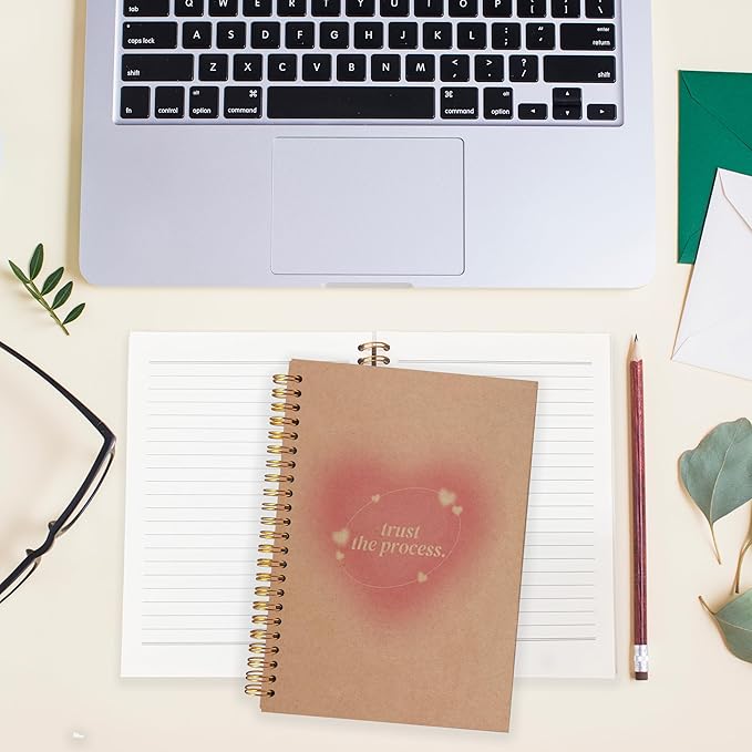 BearCake Aesthetic Notebooks, Trendy Y2K Pink Aura Preppy Notebook Journal, Trust the Process Inspirational Notebooks, Pink Aesthetic Office Supplies, Hardcover Spiral Notebook 5.5x8.3 kraft paper