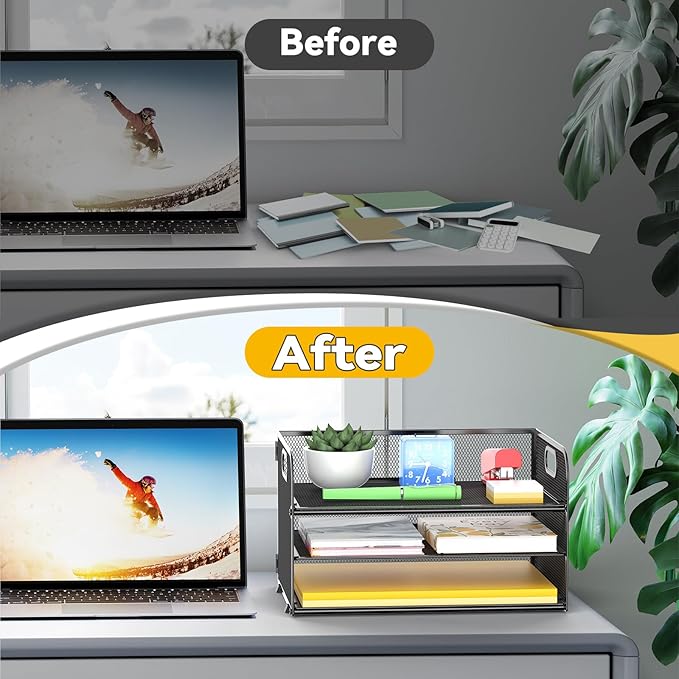 - 【SPACE-SAVING】Using a vertical structure, This Letter Tray takes up as little space as possible on your desktop, giving you a better office environment