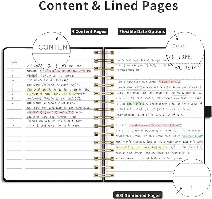 - PU Leather Hardcover & Strong Twin-Wire Binding: The notebooks feature premium vegan leather covers in various colors to meet your classification needs and protect pages; Sturdy spiral binding makes it easy to turn pages (180° lay flat, 360° flip) and tear off unwanted pages, suitable for right and left-handed users