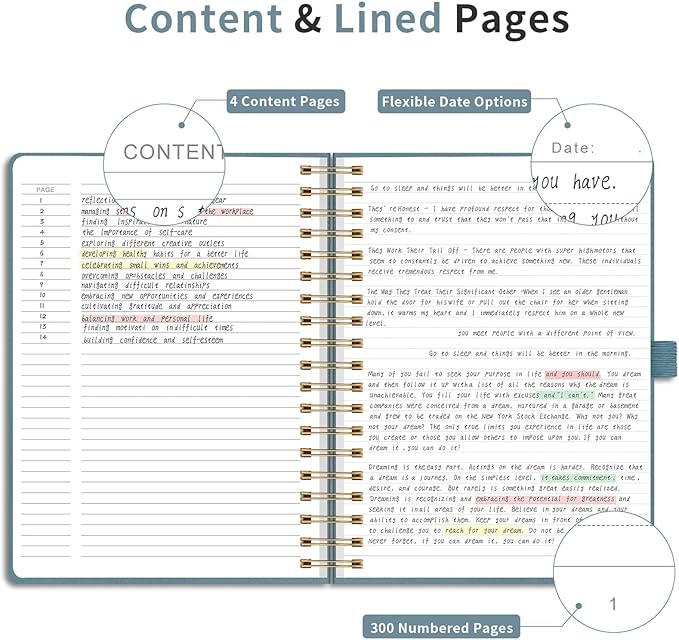 - Ample Writing Space: B5 Spiral Notebook College Ruled, 100GSM Thick Paper, No Bleed-Through, PU Leather Cover, 300 pages (7mm spaced lines) in B5 size (7.48”x10.15”), consolidate notes, ideal for school, office, or journaling