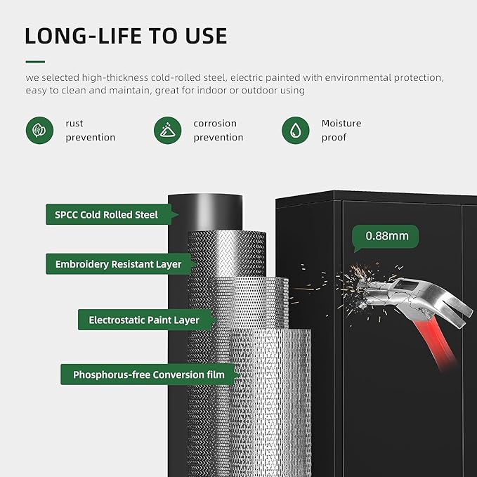 - [Anti-Tipping Design]:Greenvelly metal cabinets 2024 have added a design to prevent tipping and could be more securely fixed to the wall. Prevent the cabinet from tipping forward due to heavy objects. In our product package we provide expansion screws, you can measure the position you need in advance to install, make it more stable.