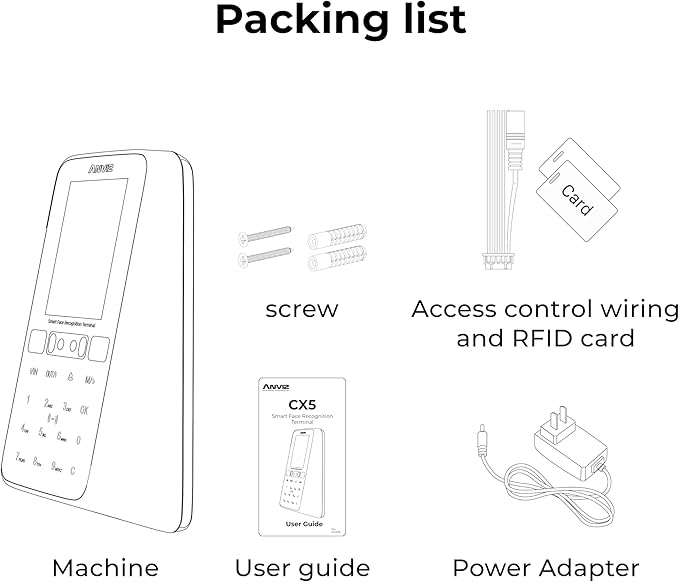 ANVIZ Time Clocks for Employees Small Business - CX5 Clock in and Out Machine - Face + RFID + Pin - Door Access - Biometric Electronic Punch Machine - Forever Free Cloud Software