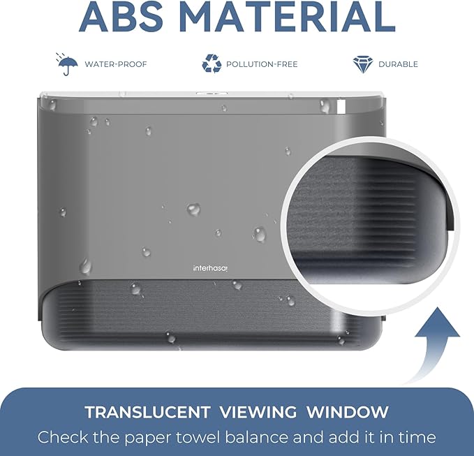 - 【SLEEK PAPER DISPENSER】This sleek bathroom paper towel dispenser is made of high impact ABS material. Designed with smooth surface and round edges for easy daily maintenance and prevent hands hurting.