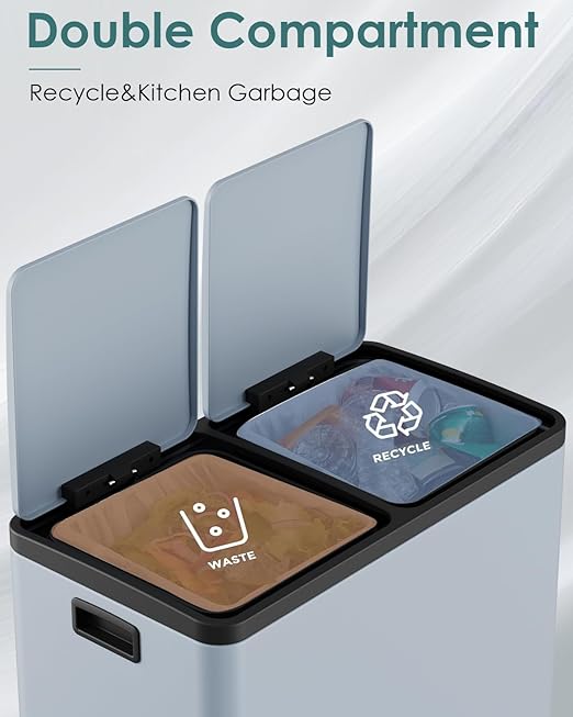 - 2*8 GALLONS COMPARTMENTS: Trash can has two independently compartments for trash and recyclables, making it easy to sort waste.