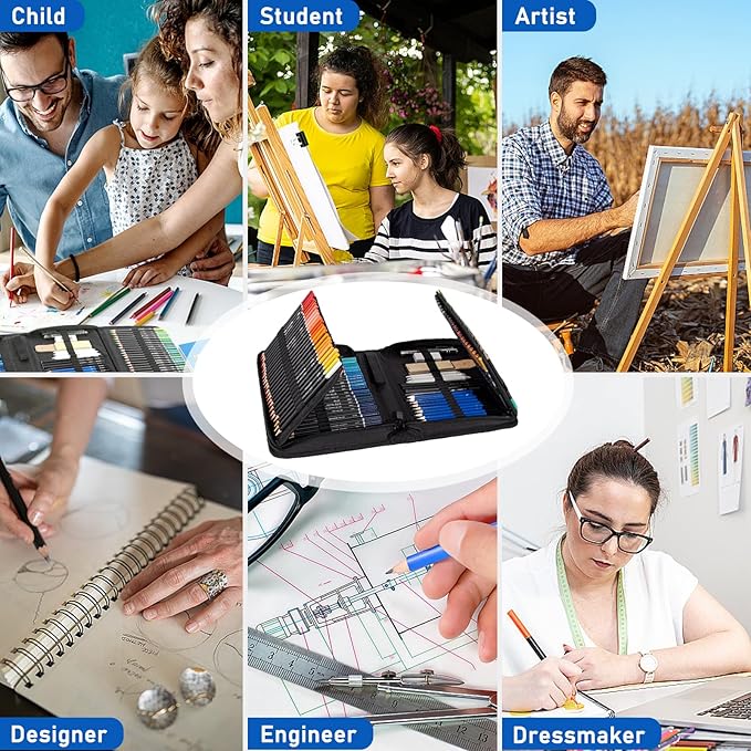 - Portable and Easy to Carry: Our pencils set contains all the pencils that you need in a zipper case, with individual slots for each pencil and drawing tool, helps you find and organize your pencils and tools easily, well protects them from damage. Zipper case sketch book and pencils set is easy to carry around, which is a portable art supplies in your daily life.