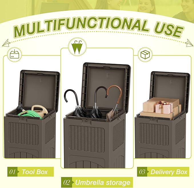 Greesum 33 Gallon Outdoor Trash Can with Lid, Waterproof Resin Garbage Bin for Hideaway, Deck, Patio, 4 Pack, Dark Brown
