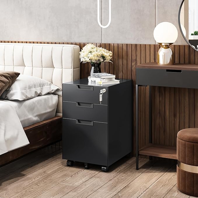 - CAN BE PLACED EVERYWHERE - Thanks to the compact design and five flexible wheels of this filing cabinet, you can easily putting it under the desk, next to the sofa, in the bedroom to using as a under desk file cabinet, a bedside tables etc.