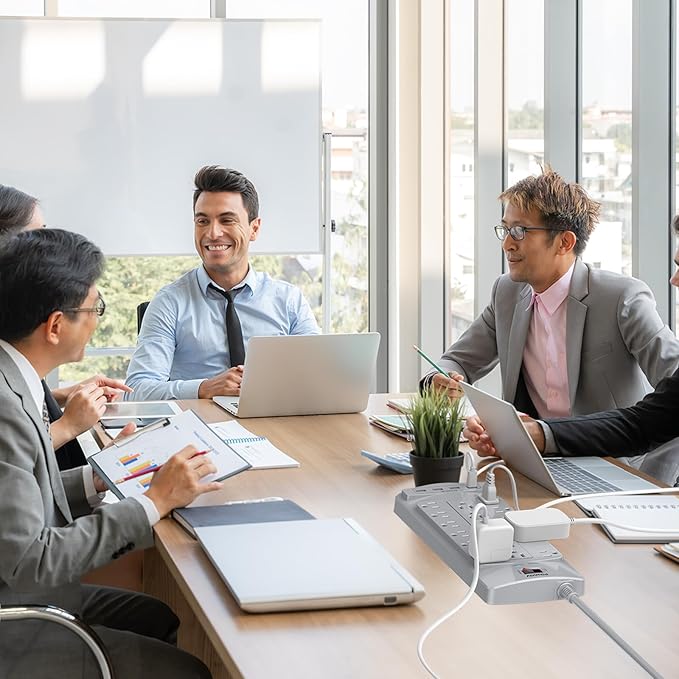 - Power Strip with 18 outlets & 4 USB Ports: 18AC outlets & 4 USB ports (5V/3.0A, 17W) power strip with 10 feet Flat Plug Heavy Duty power extension cord(1875W/15A), surge protector(2100 Joules) with overload protection protects against spikes and fluctuations,Lots of outlets for a computer desk works great for all the electronics a gamer needs.
