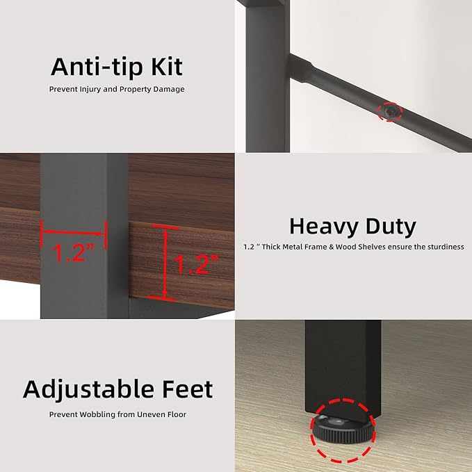 - 【Crossbar and Adjustable Feet】: The design includes a crossbar for additional stability, along with adjustable feet to ensure the wood and metal book shelf remains steady on uneven floors, preventing any wobbling or tilting.