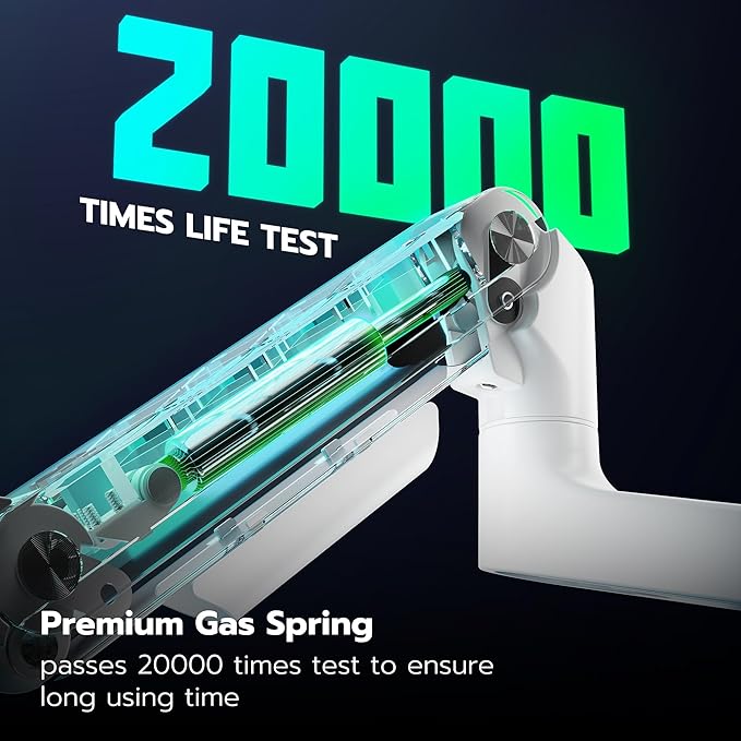 - 18" Extended Column and Gas Spring Design – The ARES WING ultrawide monitor arm features an 18" extended column, offering maximum height adjustment up to 26.3” and an arm extension of 22.3”, providing excellent flexibility. The stable gas spring system enables a smooth tilt range of +50° to -20°, ±90° swivel, and 360° rotation. This height versatility allows for various screen stacking configurations, delivering a more comfortable experience whether you're gaming or watching matches.